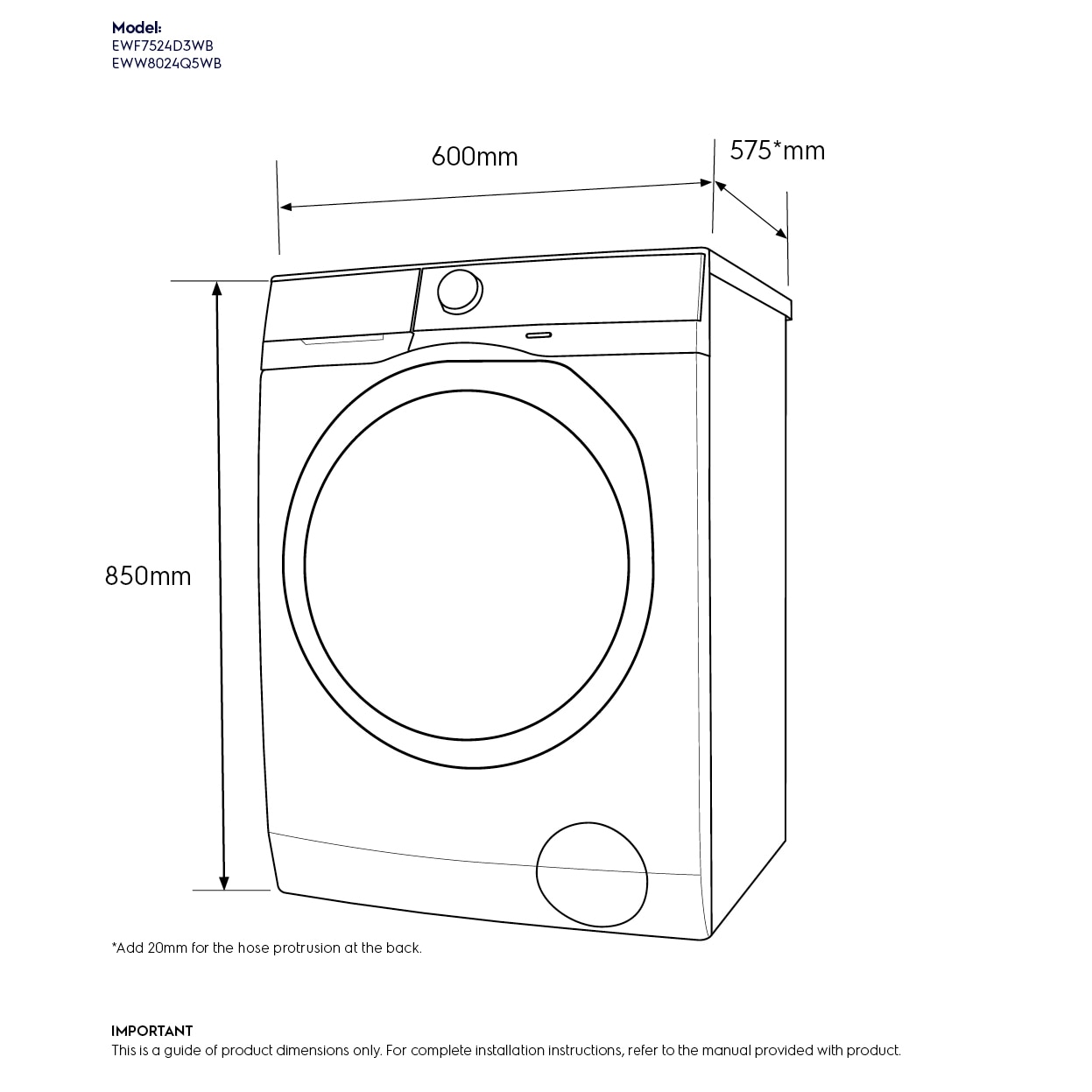 - 575 mm (D)